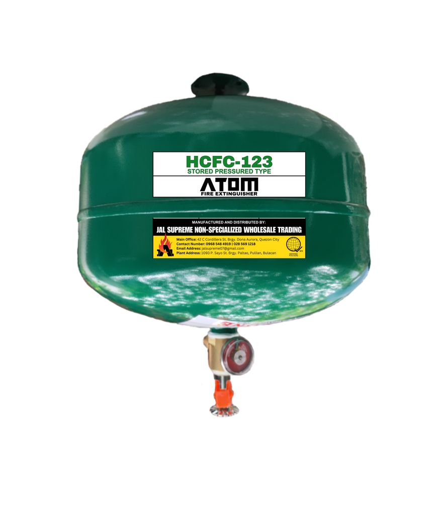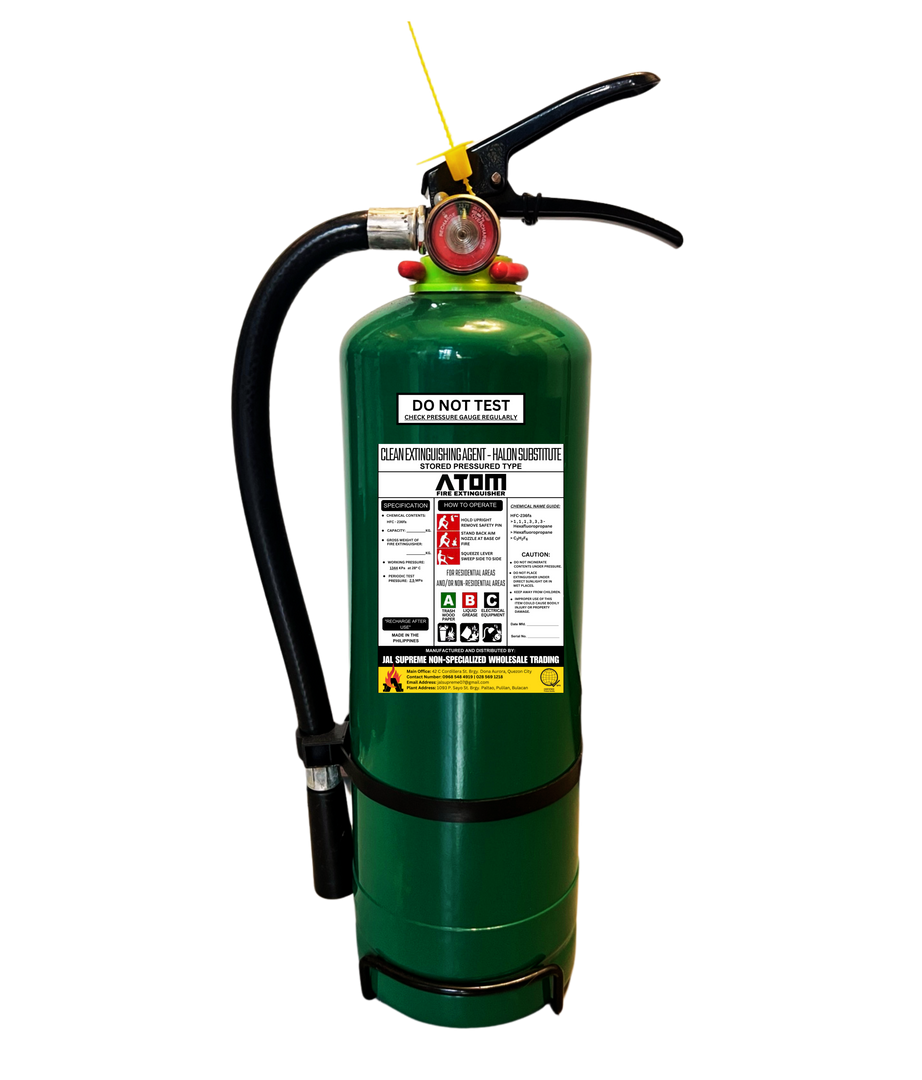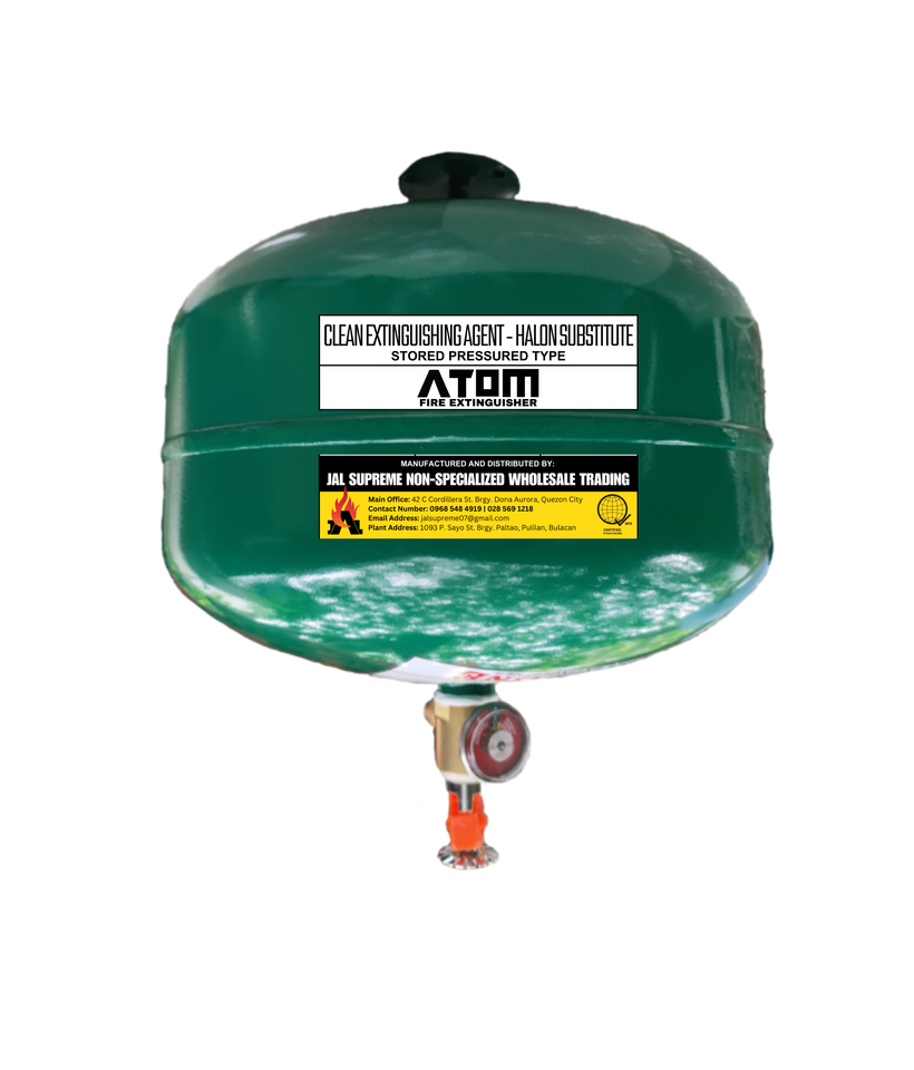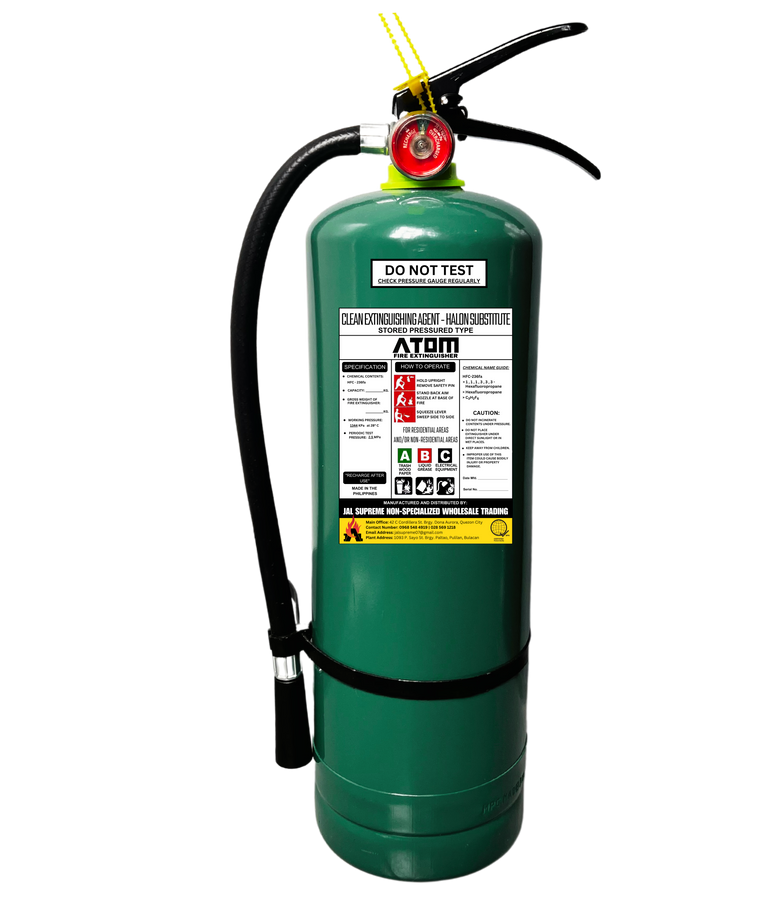 Sprays a liquid chemical that transforms into gas that extinguishes the fire by reducing oxygen levels and impeding the chain reaction of fire.