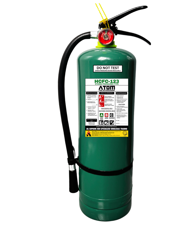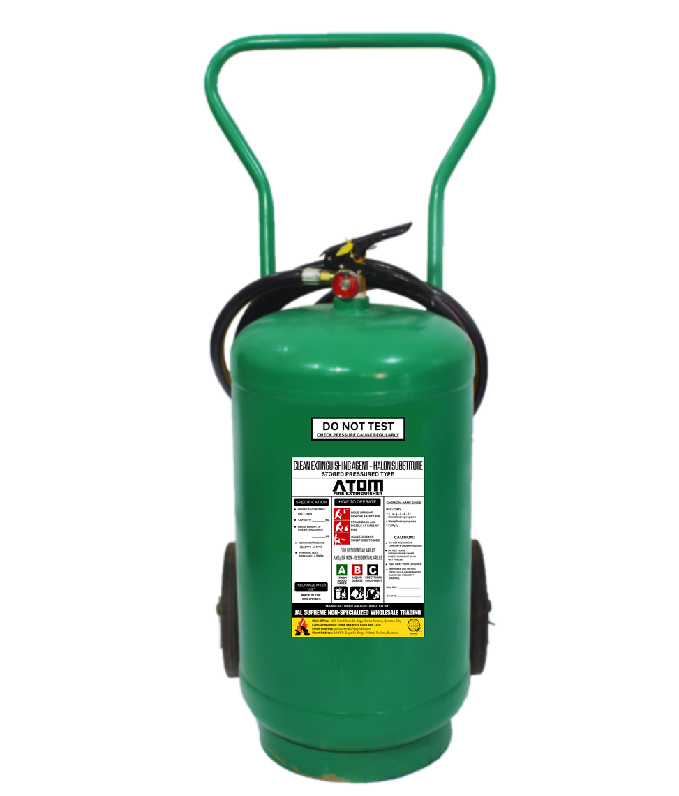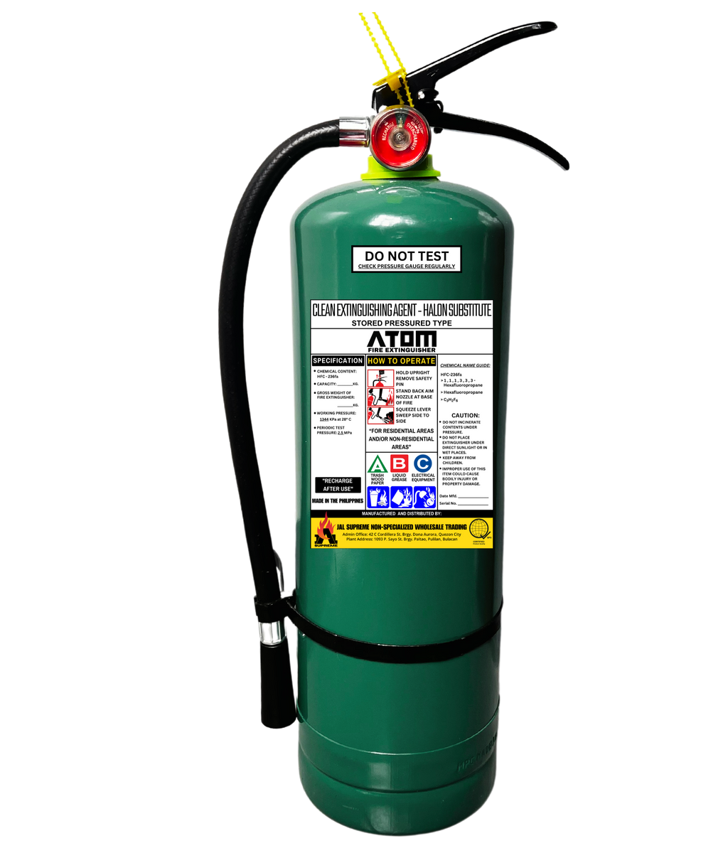 Sprays a liquid chemical that transforms into gas that extinguishes the fire by reducing oxygen levels and impeding the chain reaction of fire.